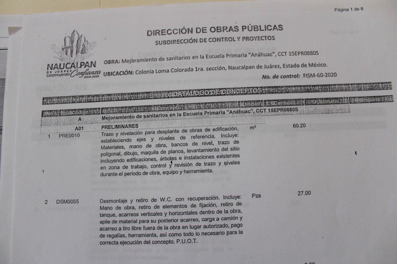 Docentes y alumnos de la Escuela “Anáhuac” recibieron una buena noticia en noviembre del año pasado: el ayuntamiento de Naucalpan aprobó un presupuesto de medio millón de pesos para la rehabilitación de los baños de niñas y niños, mismos que se encontraban en mal estado. Además se destinarían 900 mil pesos para la construcción de una barda perimetral. En total, se invertiría 1 millón 400 mil pesos para las obras.