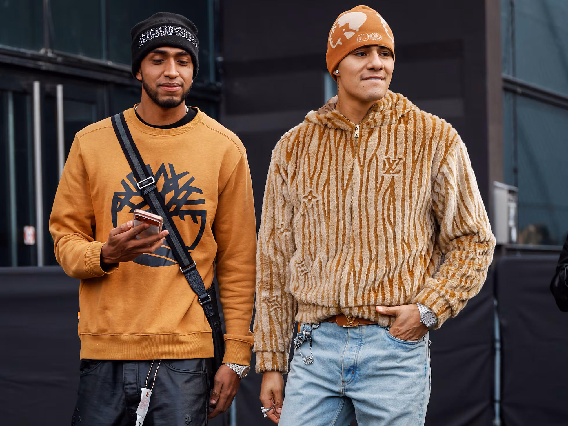 El Bogueto, por su parte, llevó un abrigo oversized, pantalones con estampado de leopardo, cuello alto y gafas de sol. En redes sociales celebró su debut parisino: “De chacales del barrio, a modelos. Hoy modelamos por primera vez en París, manden todo el ‘ki’”, escribió en sus historias de Instagram.
