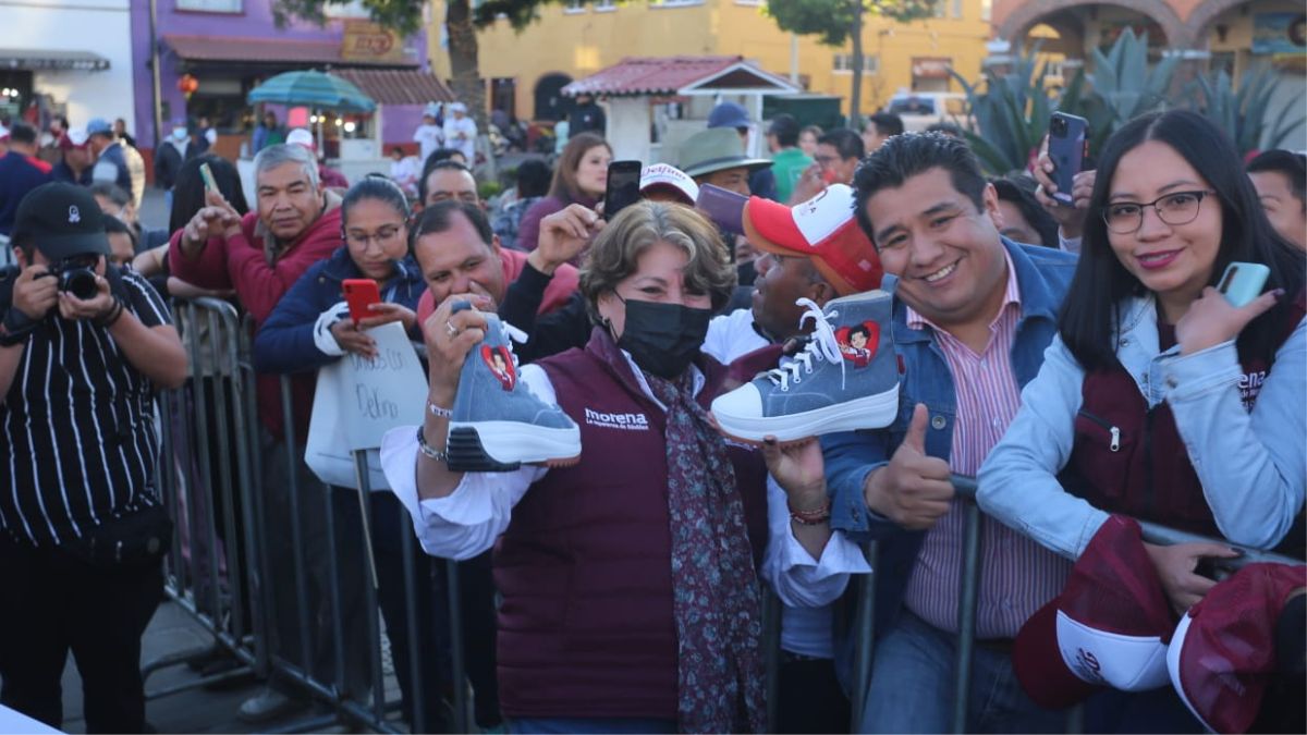 Durante el evento que se realizó en la plaza Juárez de Metepec, los productores tenían la intención de darle un par de tenis a Delfina Gómez. El objetivo es que recorra el Estado de México con ellos, llevando el proyecto de la 4 Transformación a todos los municipios