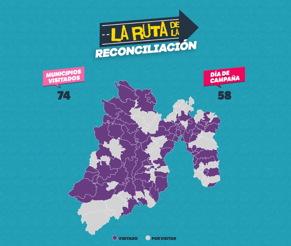 Cabe destacar que, al día de hoy, la candidata de la alianza Va por el Estado de México, Alejandra del Moral, ha visitado un total de 74 municipios, tal y como puede verse en su página oficial. La candidata priista dijo durante su cierre de campaña en Toluca que ya había recorrido los 125 municipios de la entidad mexiquense, afirmación que es falsa.