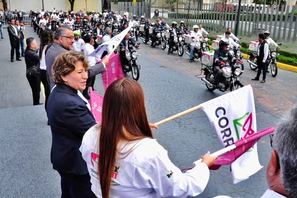 La gobernadora Delfina Gómez y Rocío Bárcena Molina, directora general del Servicio Postal Mexicano, llevaron a cabo una ceremonia de entrega de motocicletas a los carteros del Edomex con el objetivo de mejorar la seguridad y agilizar los procesos de entrega y recolección de correspondencia en la entidad.