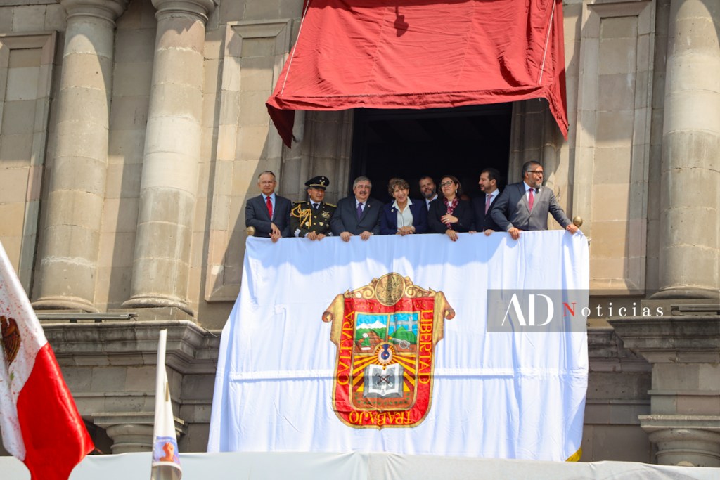 De esta manera, los servidores públicos presenciaron el desfile que reunió diversos contingentes, tales como el de la Universidad Autónoma del Estado de México (UAEMex), elementos de la Guardia Nacional, bomberos, Cruz Roja y Protección Civil, así como binomios caninos.