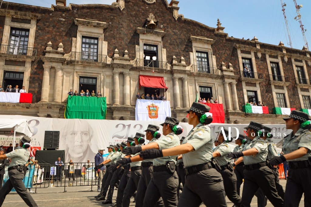 Durante el desfile, destacó la participación de una bandera monumental, dos banderas de guerra, 16 banderas, 4 mil 066 elementos, 124 binomios equinos, 49 binomios caninos, un halcón, 262 vehículos y 58 motocicletas.