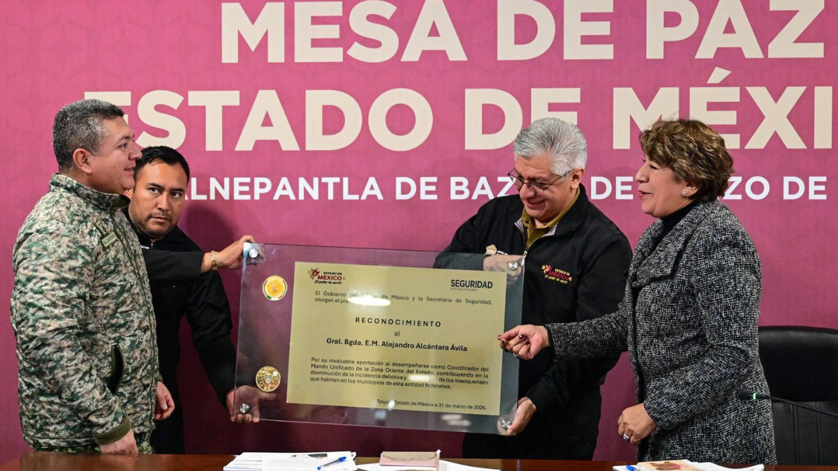 Durante la Mesa de Paz del 30 de marzo de 2026, la gobernadora Delfina Gómez Álvarez reconoció públicamente al General Alejandro Alcántara Ávila, coordinador del Mando Unificado, por los avances alcanzados en la entidad.