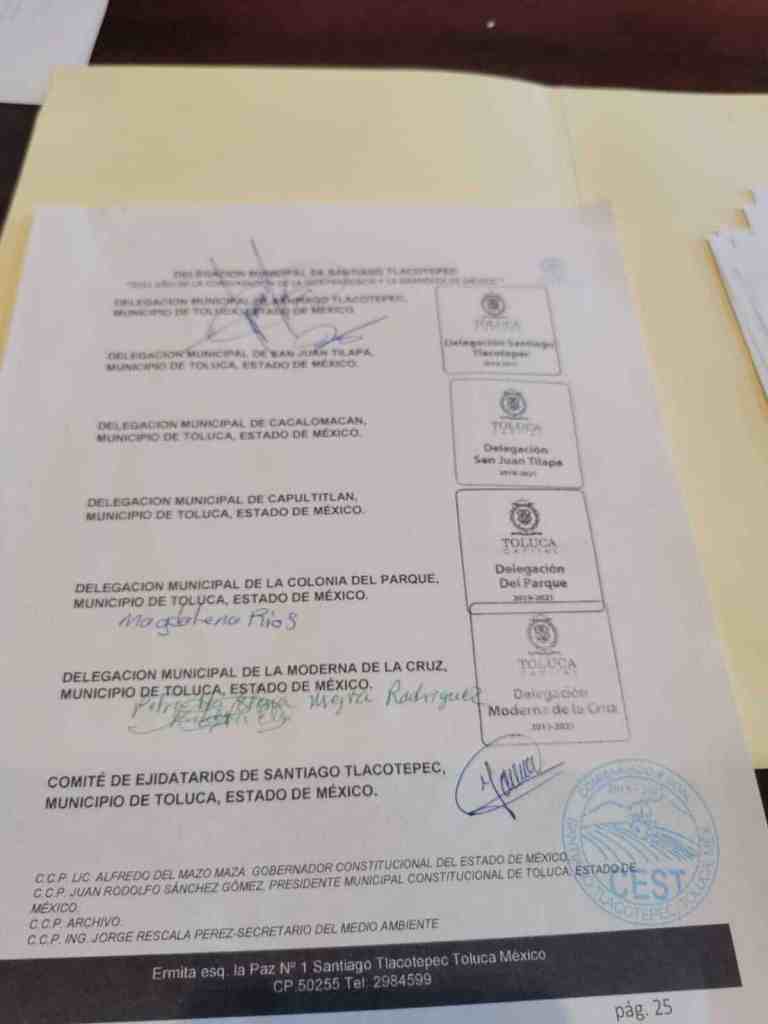A la solicitud que será entregada en los próximos días en la oficialía de partes de la Presidencia de la República, se han sumado las Delegaciones de San Juan Tilapa, Cacalomacán, Capultitlán, la Colonia del Parque, La Moderna de la Cruz y un Comité de Ejidatarios de Santiago Tlacotepec.