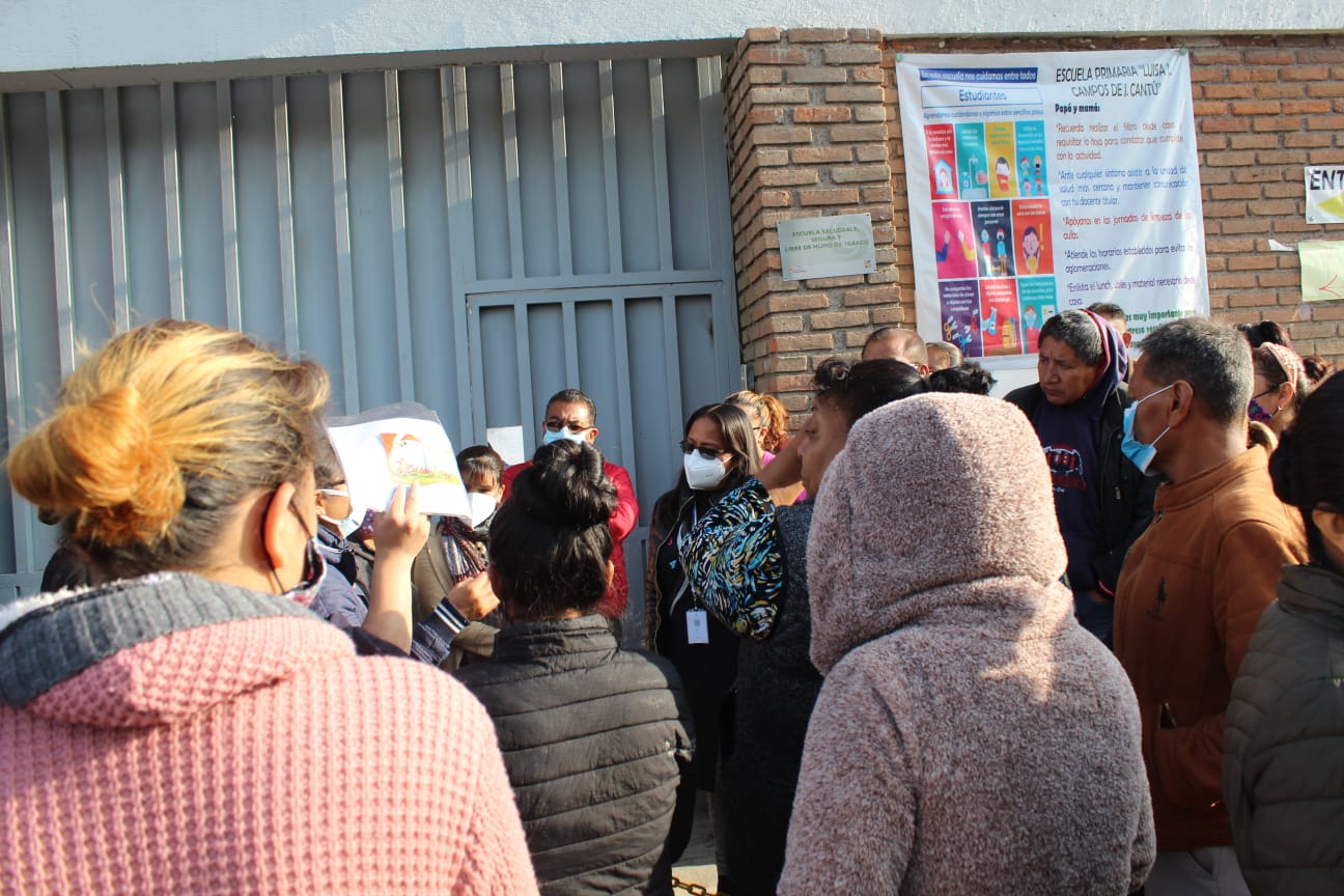 Padres y madres de familia protestas afuera de la primaria Luisa I. Campos de Jiménez Cantú. Fotos: Uriel García