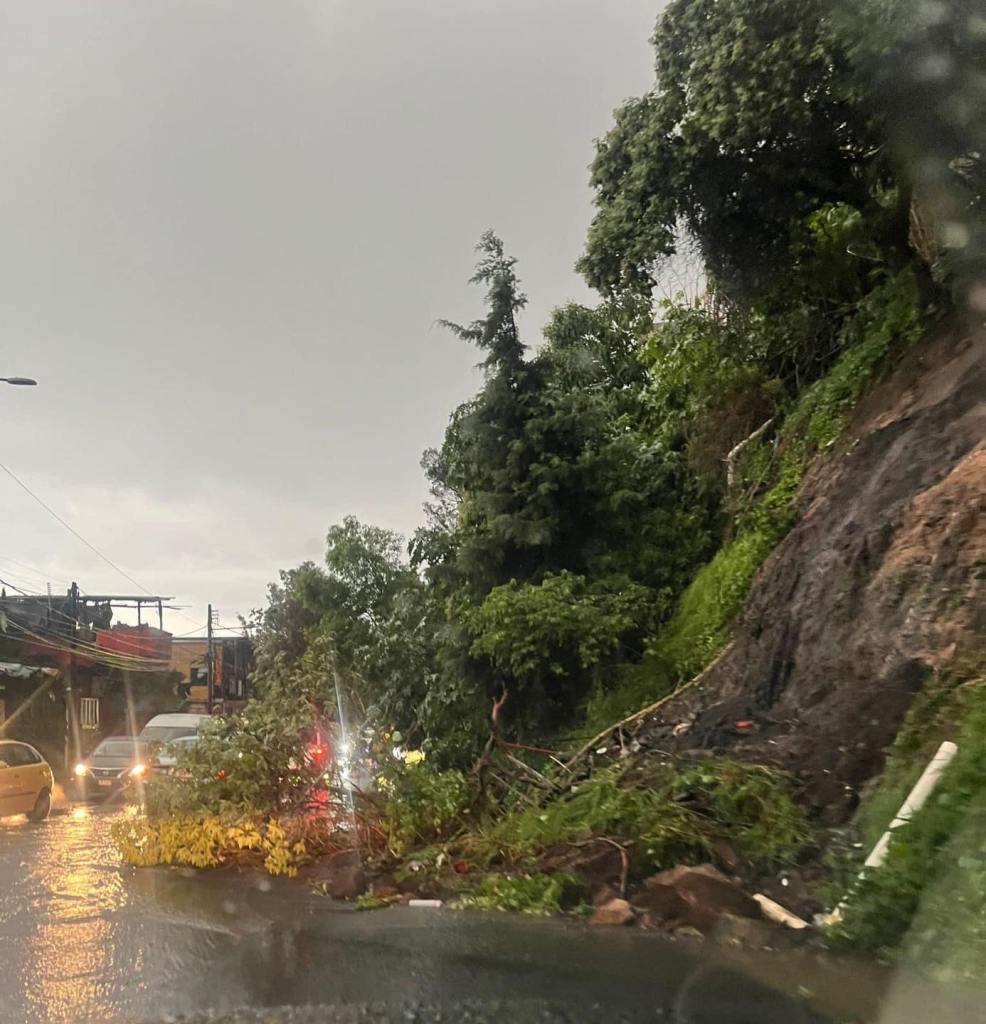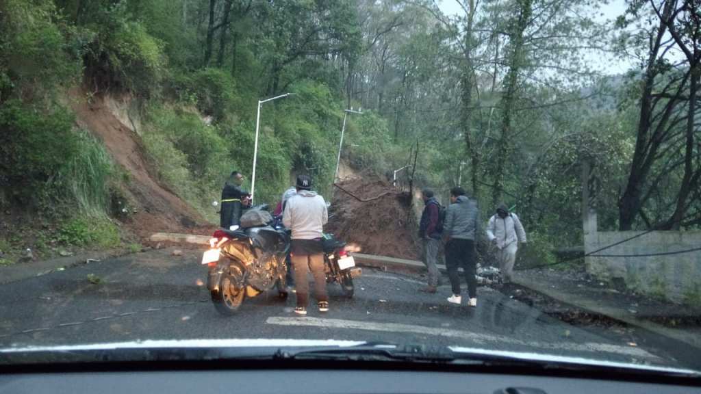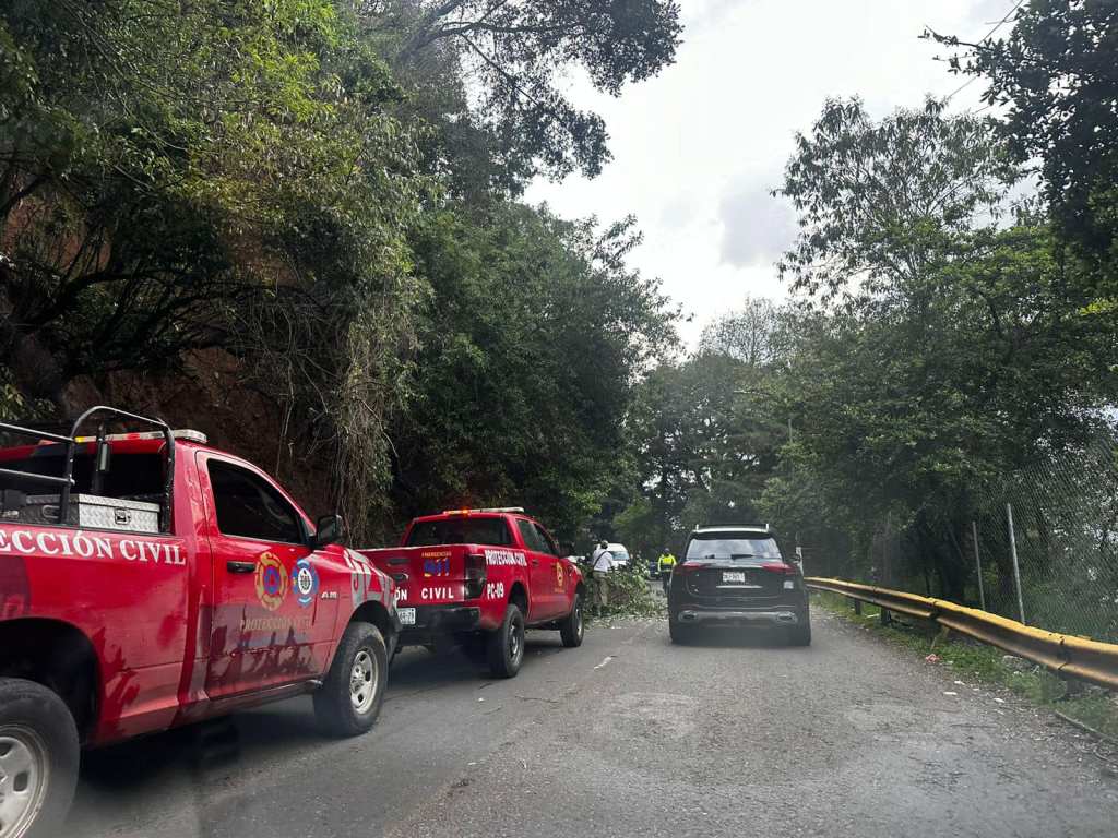 Tierra, piedras y árboles se desprendieron de un cerro y bloquearon uno de los sentidos de la vía Huixquilucan-Río Hondo, a la altura de las Manchas, causando congestión vehicular.