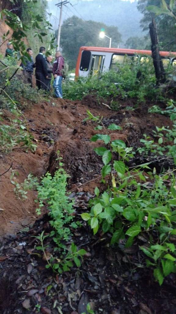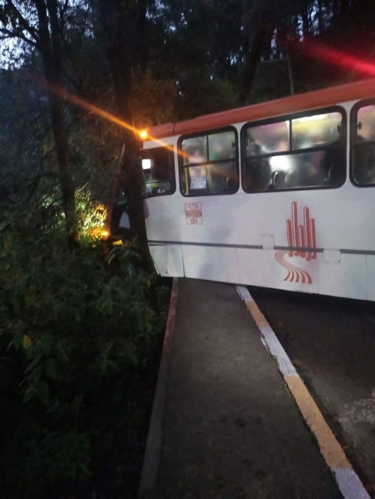 Un camión de la ruta 04, número 127, chocó contra un deslave en la carretera Santa Cruz-Huixquilucan, a la entrada del paraje La Pera. Como resultado del incidente, un conductor y dos pasajeros resultaron heridos.