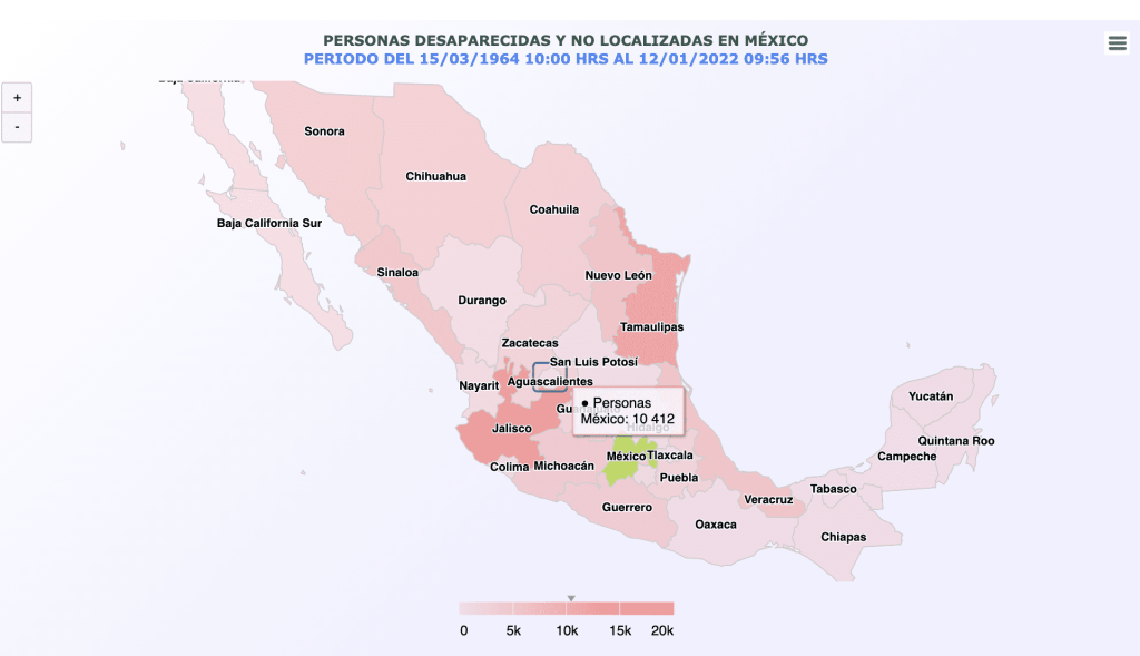 Mapa de personas desaparecidas y no localizadas / Imagen tomada del RNPDNO
