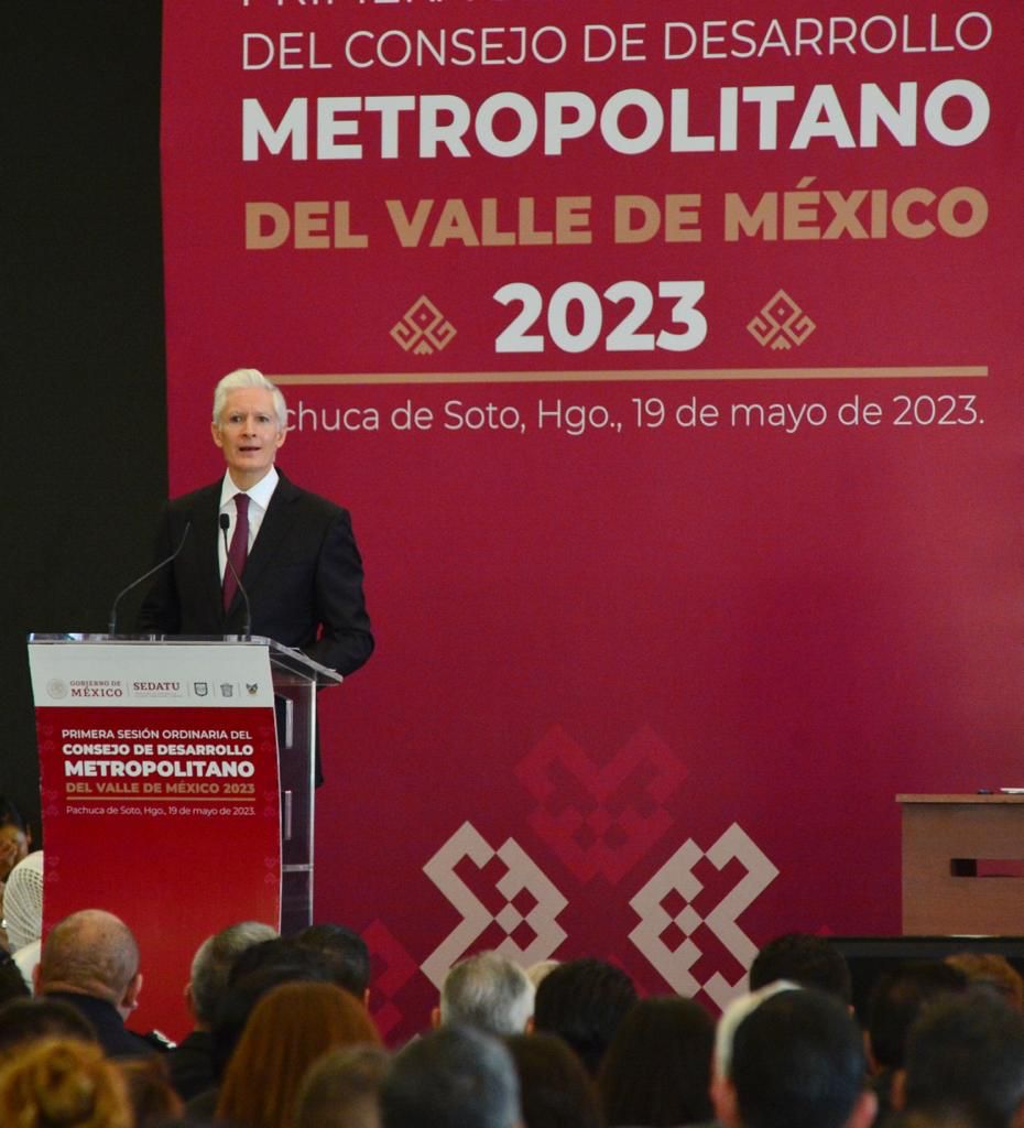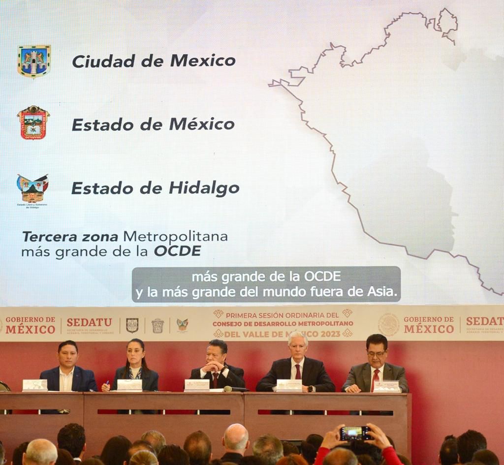 El gobernador del Estado de México, su homólogo de Hidalgo, la jefa de Gobierno de la Ciudad de México y el director de Gobernanza y Vinculación Metropolitana de la SEDATU llevaron a cabo la Primera Sesión Ordinaria del Consejo de Desarrollo Metropolitano del Valle de México, en Pachuca, Hidalgo.