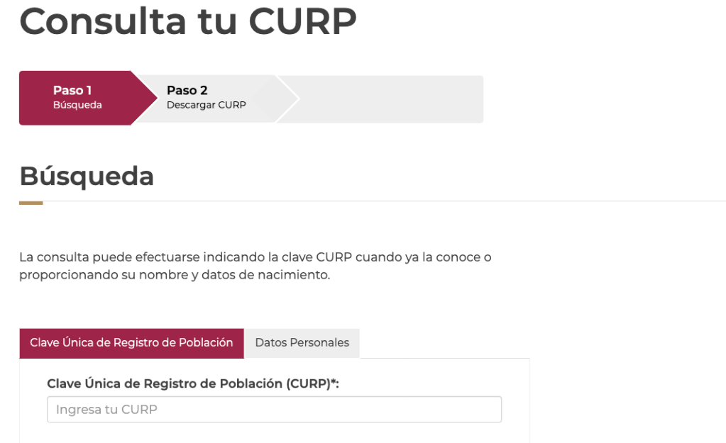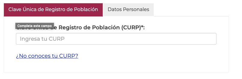 - Si conoces tu clave, simplemente completa la sección «Clave Única de Registro de Población (CURP)».