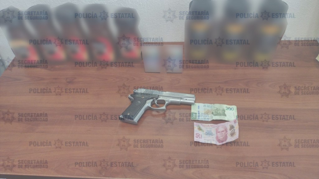 Acorde al protocolo de actuación, los oficiales intervinieron rápidamente y lo detuvieron; al efectuar una revisión, hallaron entre sus pertenencias una réplica de arma de fuego tipo escuadra, así como algunos productos y dinero con los que al parecer intentaba huir.
