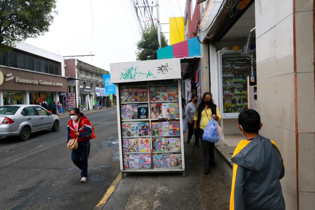Las banquetas obstruidas y reducidas obligan a los peatones a caminar por las calles, lo que representa un peligro vial en Toluca.