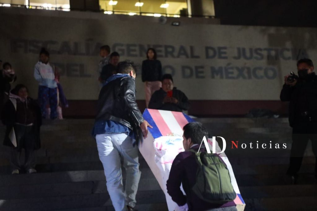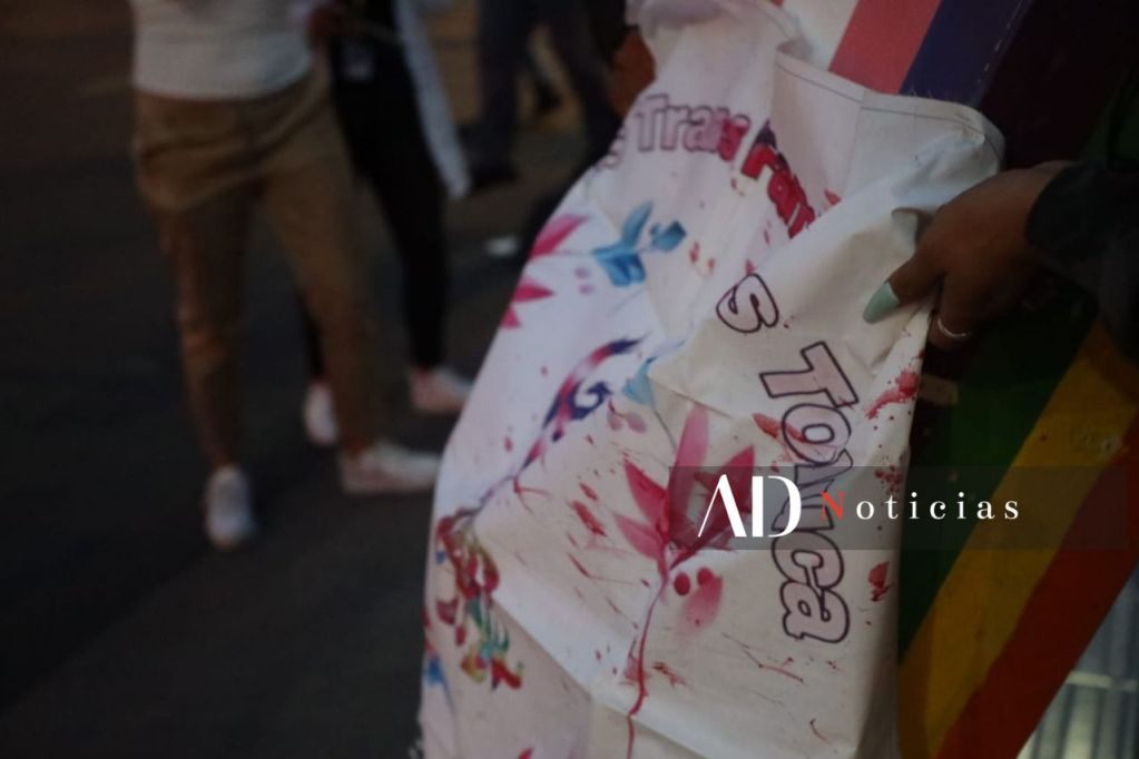 Posteriormente, caminaron hacia la Fiscalía General de Justicia del Estado de México, en donde dejaron una ofrenda en memoria de las personas de la comunidad LGBTTTI+ que han sido asesinadas.