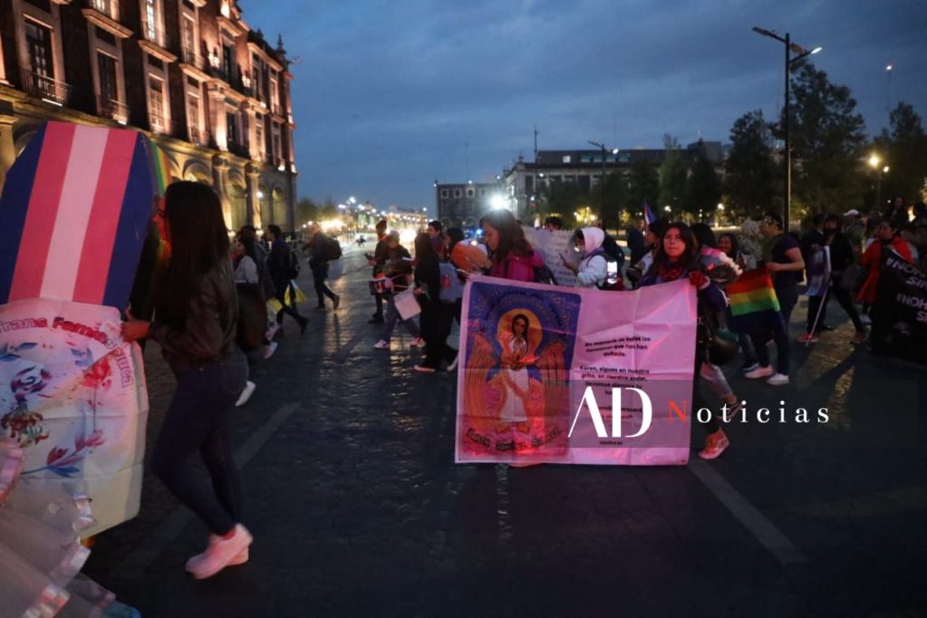 Hoy, las consignas de la marcha fueron «Del Mazo, tu gobierno es un fracaso», «la polocía no me cuida, me cuidan mis amigues», «no a la violencia trans» y «esto es por Karen y por las, los, les que ya no están».