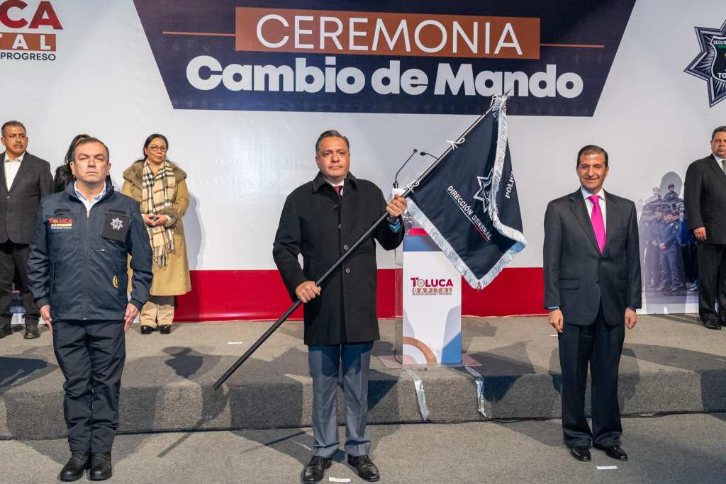 En una ceremonia realizada en el ayuntamiento de Toluca, Ricardo Moreno, presidente municipal, realizó la entrega de mando de la Policía Municipal al capitán Ayón Monsalve, quien asumirá el liderazgo de la corporación con un amplio respaldo de su experiencia en inteligencia y seguridad.
