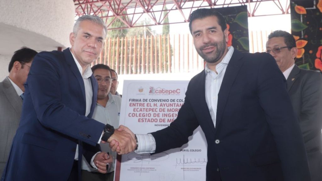 El presidente municipal de Ecatepec, Fernando Vilchis Contreras, y titulares del Colegio de Ingenieros Civiles del Estado de México (CICEM) firmaron un convenio de colaboración con el objetivo de que especialistas de dicha institución colaboren en el desarrollo de proyectos para mejorar la infraestructura urbana en el municipio.