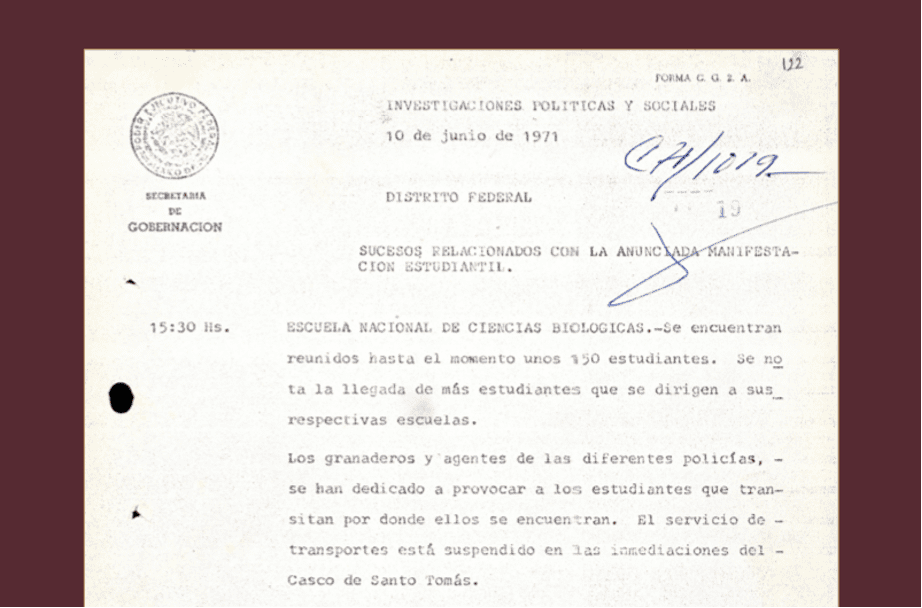 Luego de lo sucedido, el 2 de octubre de 1968, la vigilancia a los estudiantes y organizaciones era común. Agentes adscritos a la Secretaría de Gobernación reportaban diariamente sobre las acciones de activistas y líderes estudiantiles. Se informó de la propuesta de manifestación del 10 de junio y de la propaganda; además de los volantes e invitación que se hacía al pueblo de México para asistir a la manifestación convocada a las 16:00 horas del Casco de Santo Tomás al Monumento a la Revolución.