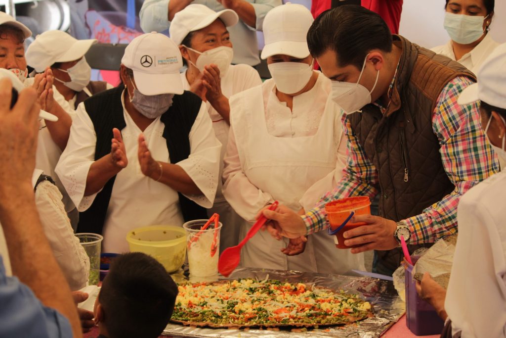 La gente disfrutó de los huaraches tradicionales, así como de tinga de res, pata de cerdo y Mole. Estiman que el día de mañana 13 de marzo, puedan asistir más personas, a partir de las 10:30 de la mañana para que puedan degustar de un platillo gastronómico originario