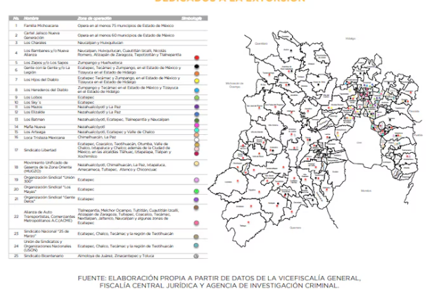 Así mismo, en 2024, la Fiscalía General de Justicia del Edomex (FGJEM) afirmó que ACME pertenecía a las 25 agrupaciones criminales dedicadas a la extorsión que investigan.