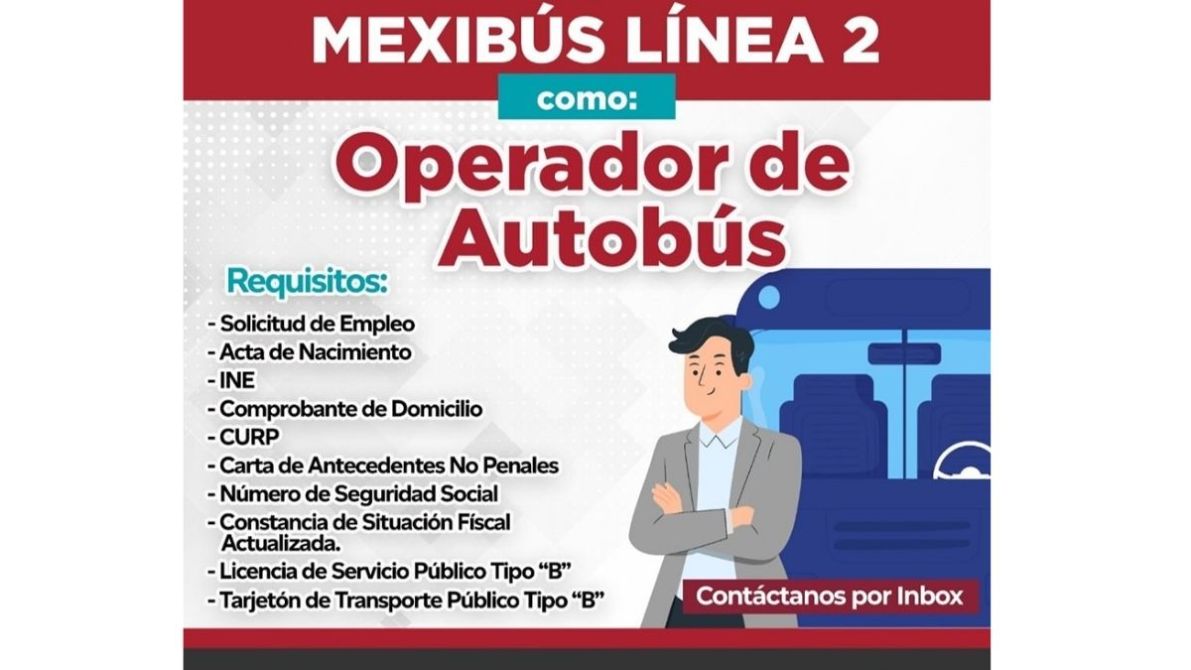 La Línea 2 del sistema de transporte Mexibús, en el Estado de México, abrió una convocatoria desde el 20 de marzo para contratar operadores en la zona norte de la entidad. Los aspirantes podrán enviar su expediente para el proceso de contratación, hasta cubrir las vacantes disponibles.