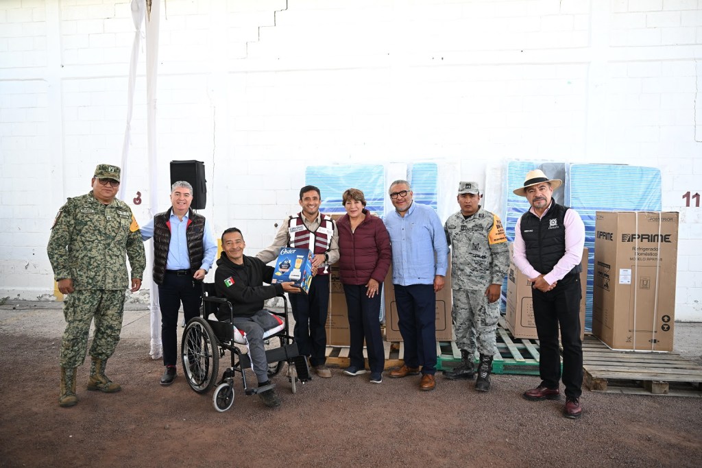 La gobernadora Delfina Gómez Álvarez entregó enseres domésticos y de línea blanca que beneficiarán a mil 800 familias afectadas por las inundaciones en el municipio Chalco, en el Estado de México, ocurridas a mediados de este año.