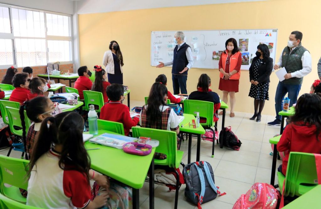 En las instalaciones de la primaria Nueva Escocia, Del Mazo entregó equipo de cómputo a la directora y el director de cada uno de estos planteles. El mandatario estatal explicó que desde noviembre, los estudiantes de la secundaria Reyes Heroles regresaron a clases presenciales. También que la escuela está lista para superar el reto de la deserción escolar, ya que por su cierre la matrícula se redujo de 400 a 200 alumnos, y actualmente son casi 300 los escolares que asisten a sus aulas remodeladas, las cuales tienen capacidad para recibir a más de 500 jóvenes.
