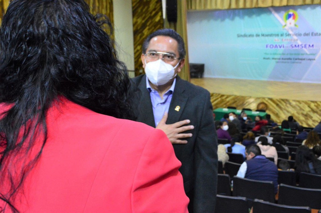 El Secretario General del SMSEM, Marco Aurelio Carbajal Leyva, encabezó la cuarta entrega de préstamos del Fondo de Apoyo a la Vivienda (FOAVI), a través de la cual, la organización sindical benefició a 72 profesoras y profesores de diferentes regiones sindicales.