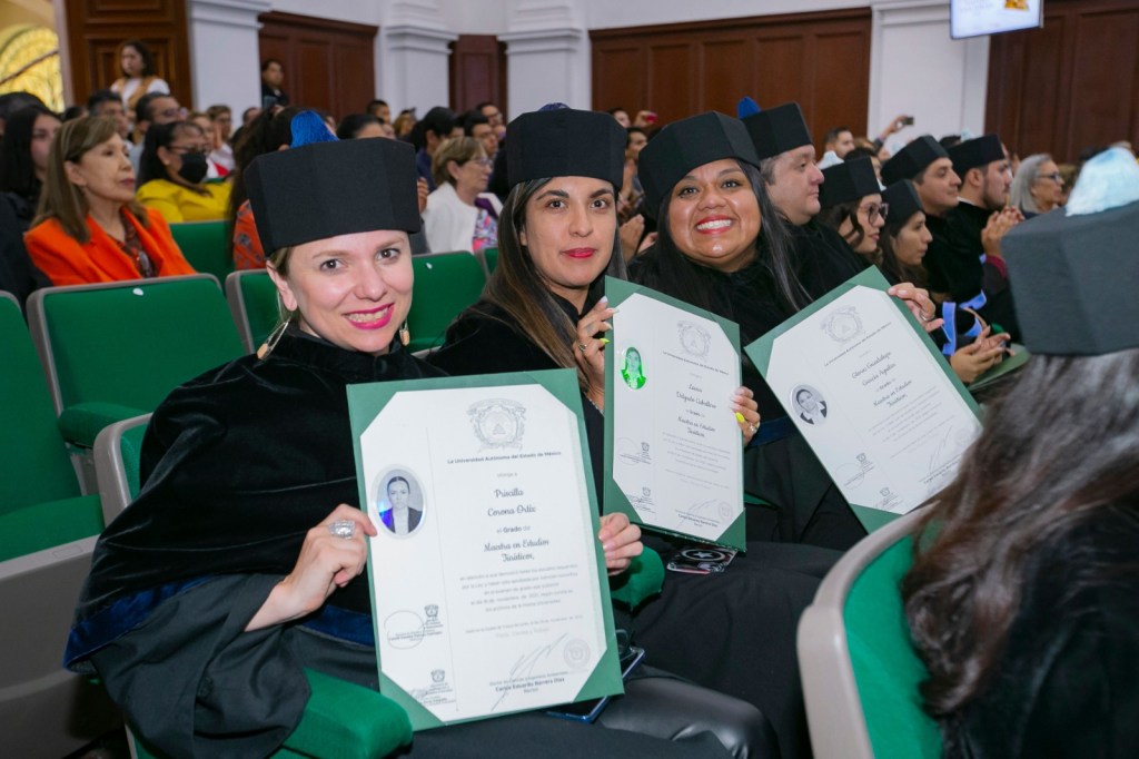 En la ceremonia también estuvieron presentes la secretaria de Investigación y Estudios Avanzados, Martha Patricia Zarza Delgado; el director de Investigación, Juan Roberto Calderón Maya; la graduada de doctorado con el mejor promedio, Noelia Romero Reyes; así como miembros del gabinete y la comunidad universitaria.