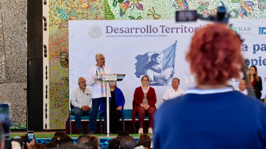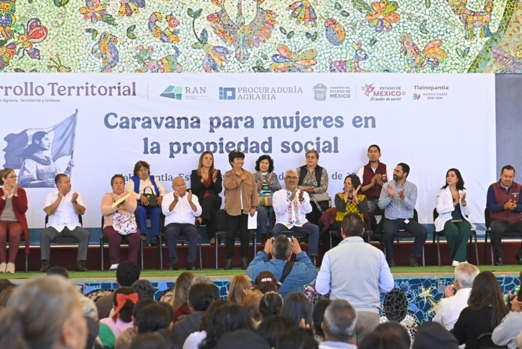 La ceremonia de entrega se realizó en el Teatro Algarabía, ubicado en la plaza central del municipio, y reunió a cientos de mujeres beneficiarias junto con sus familias, vecinos y vecinas. El acto fue presidido por autoridades de los tres niveles de gobierno: la Secretaria de Desarrollo Agrario, Territorial y Urbano (SEDATU), Edna Elena Vega Rangel; el Director General del Registro Agrario Nacional (RAN), Luis Cruz Nieva, y el Presidente Municipal de Tlalnepantla, Raciel Pérez Cruz.