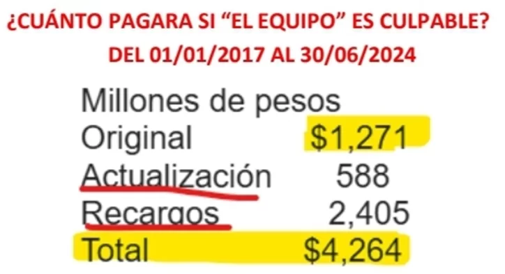 En el documento NO venían los nombres o la razón social de las empresas aludidas, solo mencionó el rubro al cual se dedicaban. Ubicado en el número 12 de la lista, aparece EQUIPO DE FÚTBOL como la actividad económica que desempeñaba esta empresa que adeuda -según el documento- la cantidad de ¡UN MIL DOSCIENTOS MILLONES DE PESOS!