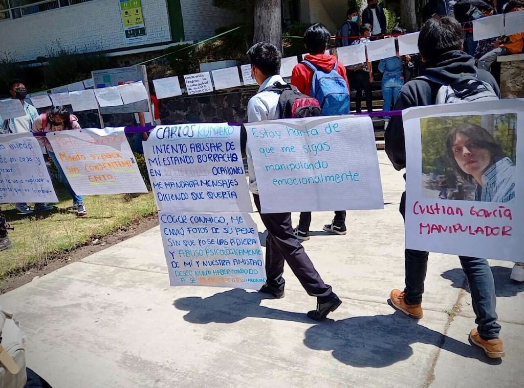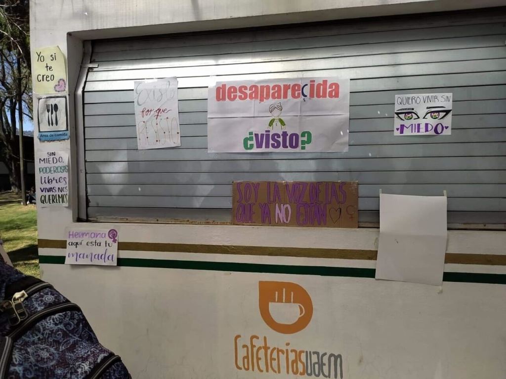 A través de tendederos y pancartas, estudiantes de facultades y prepas de la Universidad Autónoma del Estado de México han denunciado presuntos casos de violencia de género, para visibilizar esta problemática que viven dentro de la institución y en toda la entidad.