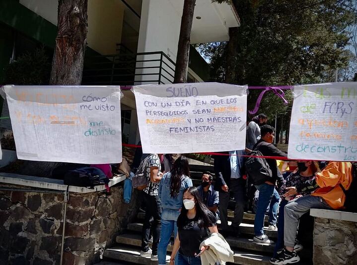 La Facultad de Ciencias Políticas y Sociales a la colocación de los tendederos con denuncias de acoso en la UAEMex. Este plantel fue uno de los últimos en culminar su parto estudiantil en 2020.