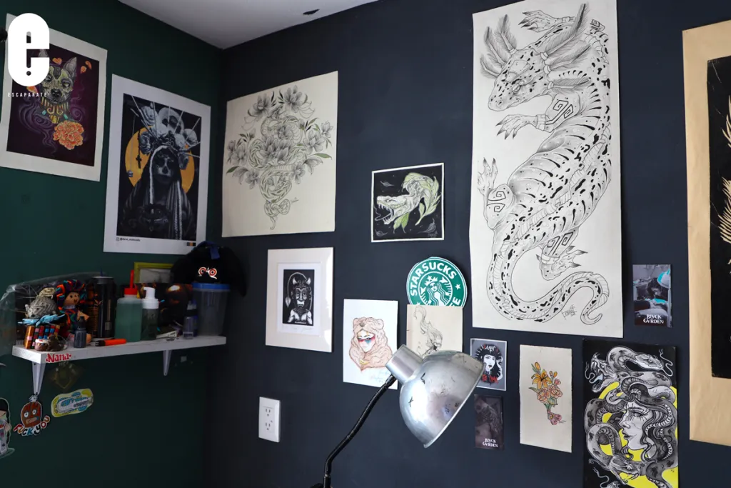 Blvck Garden Tattoo funge además como un espacio para que otros artistas pueden usar el espacio y lleguen a dibujar, pero también funciona como galería, en donde se exponen piezas de artistas visuales de la ciudad.