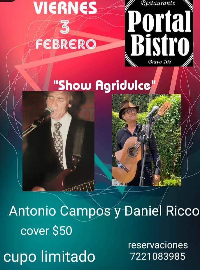 Antonio Campos y Daniel Ricco estarán en el restaurante Portal Bistro. Pasa una velada con música y comida deli.