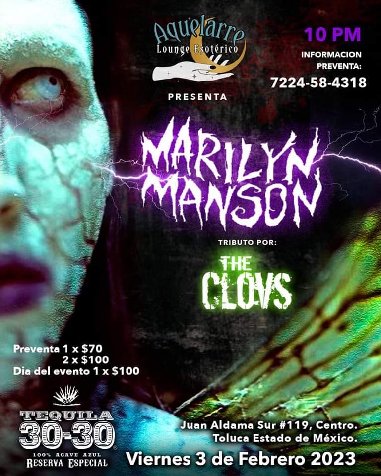 Aquelarre Lounge Esotérico presenta un tributo a Marilyn Manson por The Clovs. Así que si eres fan de su música, no te puedes perder este evento.