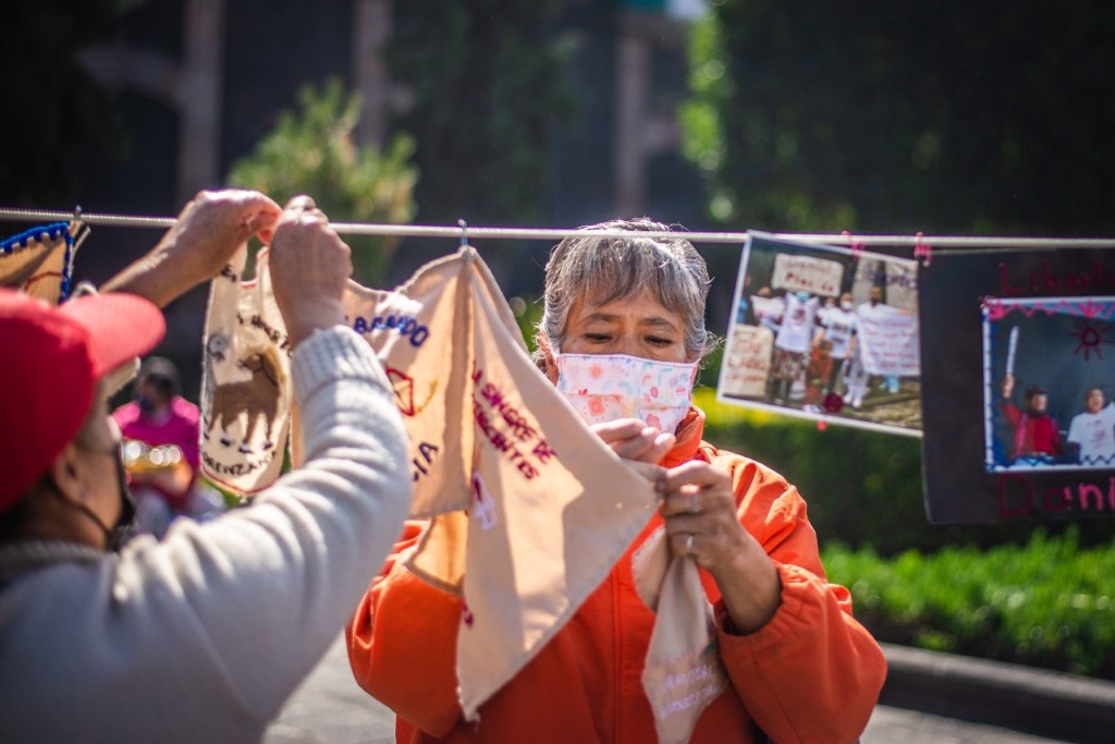 Cada bordado muestra las acciones que han realizado las familias para exigir la liberación de sus injustamente presos / FOTO: Victor Castillo