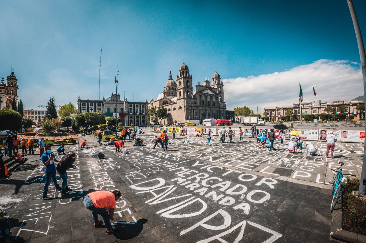 Familias de personas injustamente presas volvieron a pintar con cal el nombre de sus seres queridos / FOTO: Victor Castillo