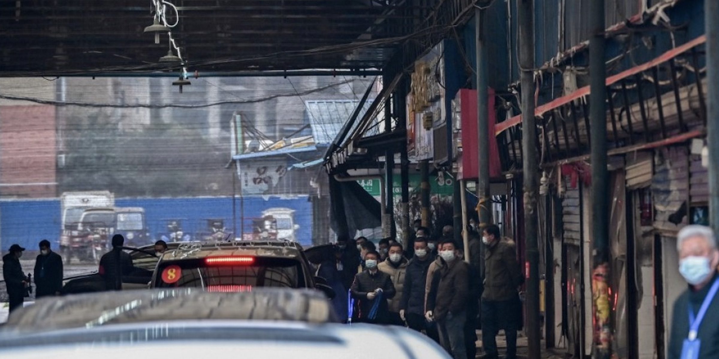 El mercado, donde se vendían animales salvajes vivos, está cerrado desde enero de 2020, y los guardias solo dejaron entrar a los vehículos del equipo de investigación de la OMS.