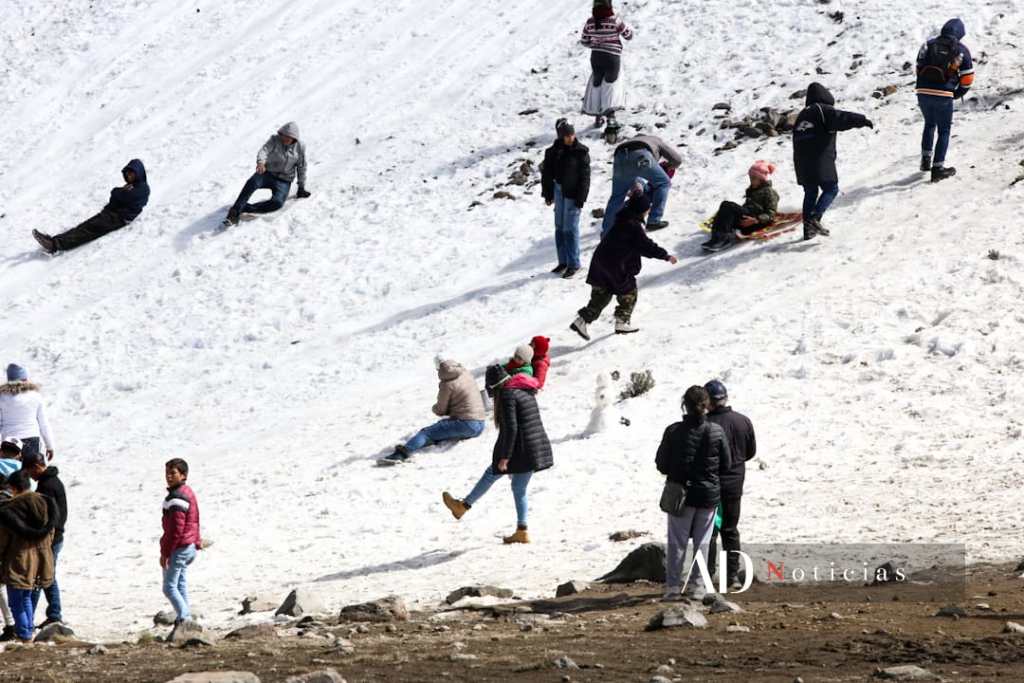 El volcán Xinantécatl o mejor conocido como el Nevado de Toluca se vistió de su característico blanco debido a las condiciones del clima de días pasados, por lo que toluqueños y familias de otras partes del Estado de México aprovecharon la oportunidad para visitar y divertirse con la nieve.