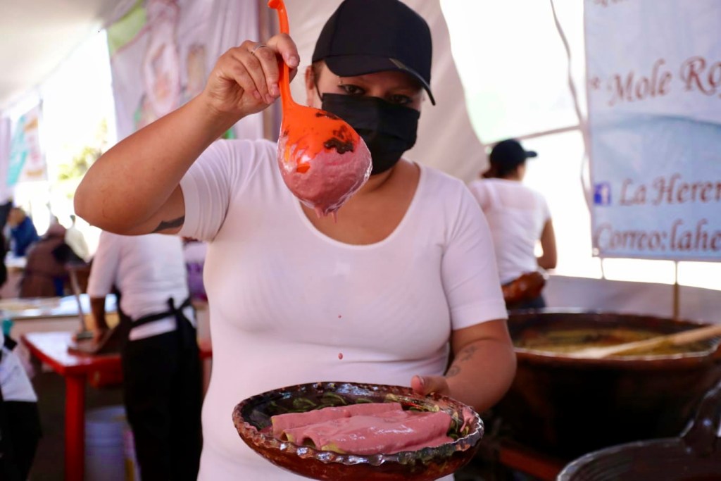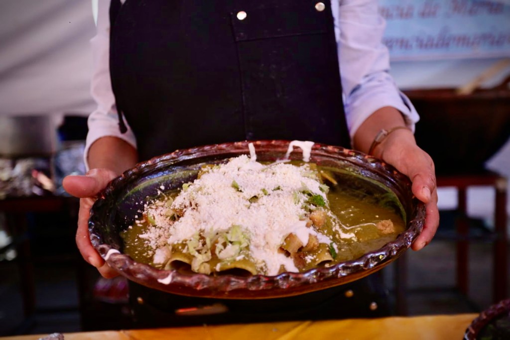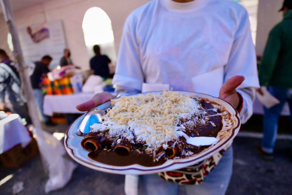 ¿Apoco no se te antojaron? Decenas de mujeres y hombres participan en la decimoprimera edición de la Feria de la Enchilada en San Buenaventura, Toluca, Estado de México. Hay más de 20 tipos de enchiladas preparadas especialmente para ti.