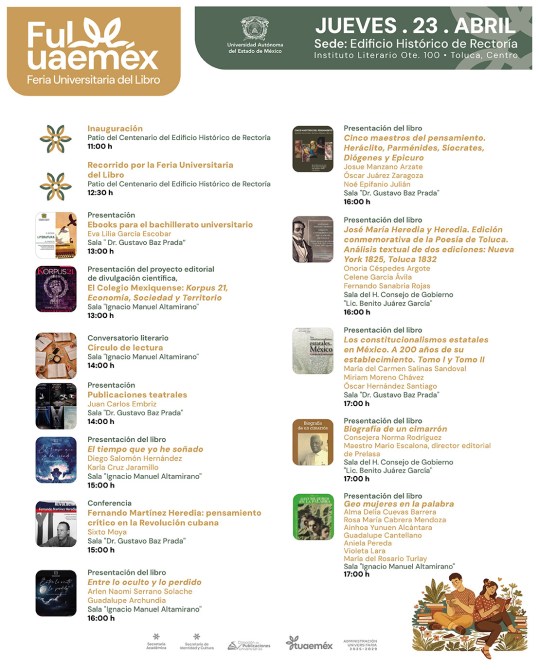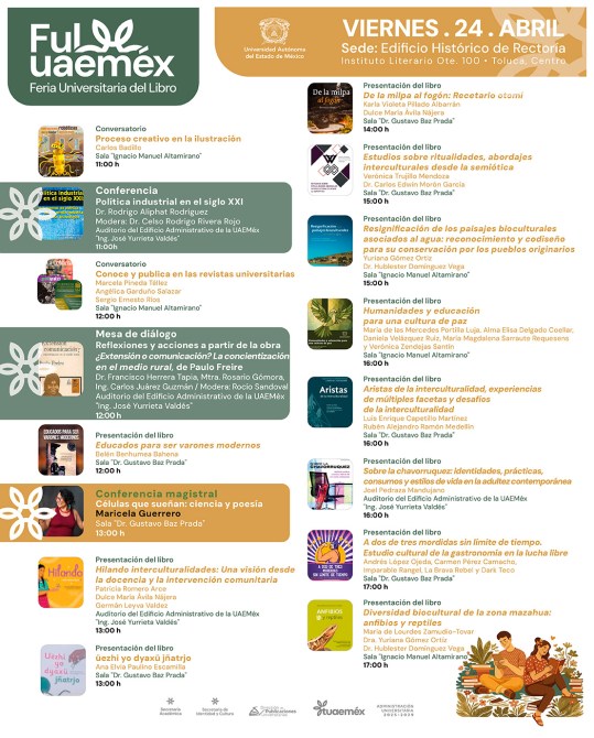 De acuerdo con la institución, la primera edición cuenta con la participación de 31 editoriales y una programación de 28 actividades académicas, entre ellas conferencias, conversatorios, presentaciones de libros y una puesta en escena, además de la colaboración de la Embajada de Cuba en México.