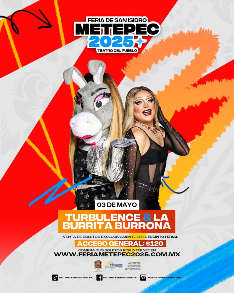 Esta noche, 3 de mayo, el escenario recibe a Turbulence y Burrita Burrona, dupla famosa por su comedia irreverente y su show viral en redes. Para el domingo, 4 de mayo, presentará Calibre 50 y Banda Carnaval.