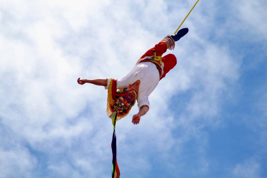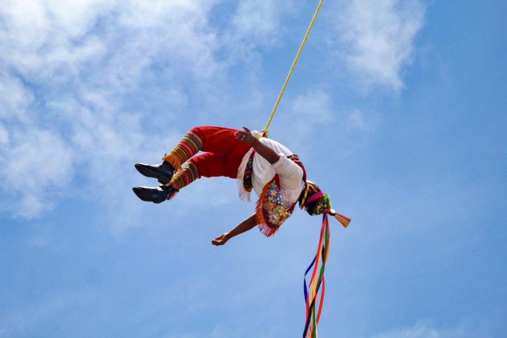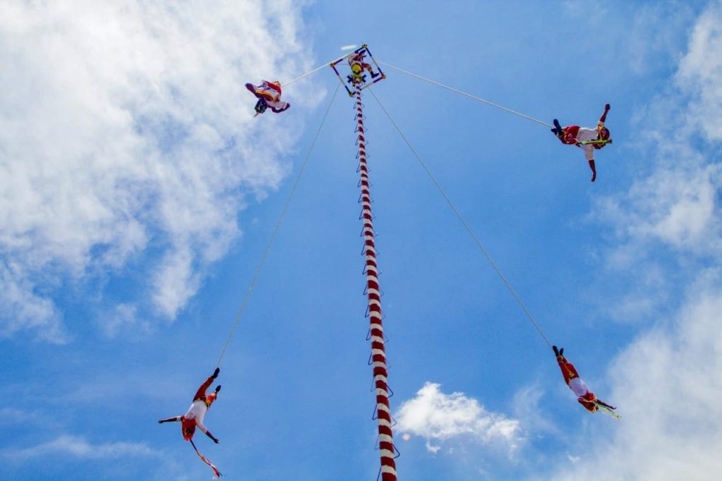 Actuación de los voladores de Papantla en la festividad de San Lorenzo. /Fotos: Uriel García