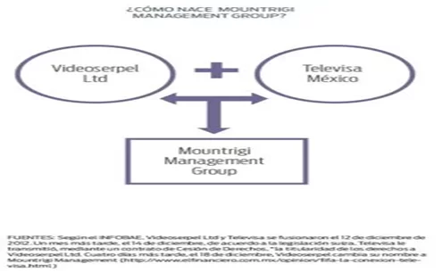 ¡Bingo! aunque NO era un secreto, ni estaba oculto la gran mayoría NO sabía que Mountigri y Televisa eran uno mismo. En el 2012, Televisa se fusiona con VideoSerpel LTD y la convierte de Mountrigi Management Group Ltd. donde depositó la propiedad de marca y todos los derechos de autor y comercial, más importantes de Televisa y le hablo desde el logotipo, hasta los derechos del Chavo del ocho o las películas de Pedro Infante, por ponerle un ejemplo.