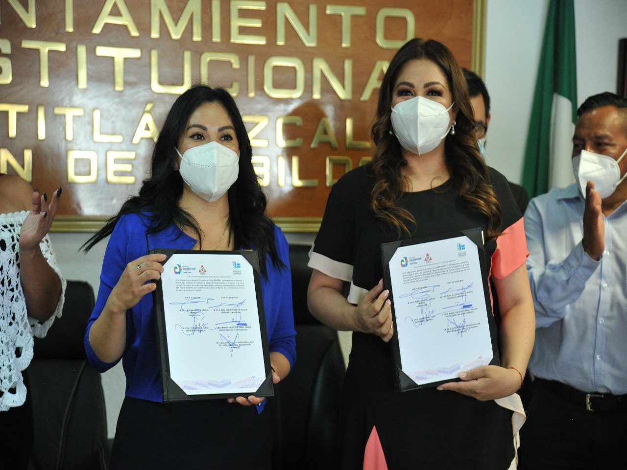 Myrna Araceli García Morón, presidenta de la Comisión de Derechos Humanos del Estado de México (Codhem) y Karla Leticia Fiesco García, presidenta municipal de Cuautitlán Izcalli, firmaron un convenio de colaboración en materia de protección a los derechos humanos.