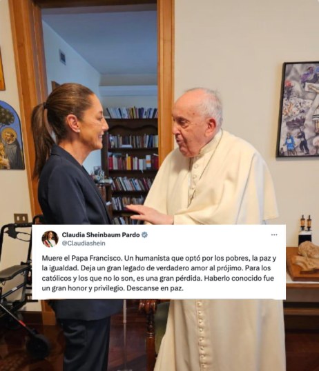 La presidenta Claudia Sheinbaum lamentó el fallecimiento del pontífice este lunes y destacó su legado como un líder espiritual comprometido con las causas sociales.