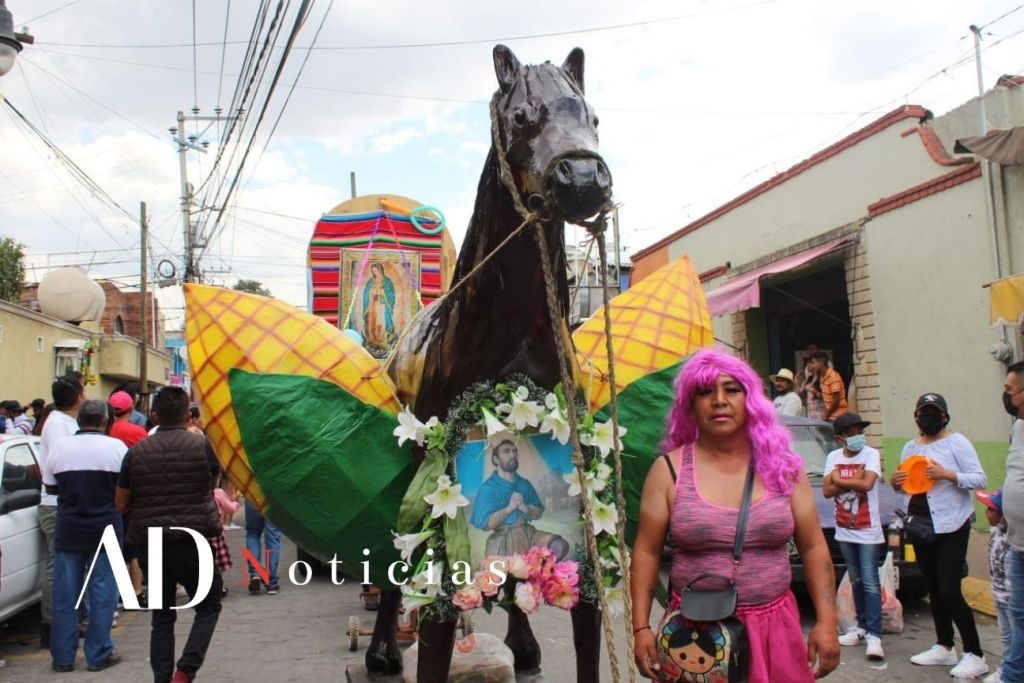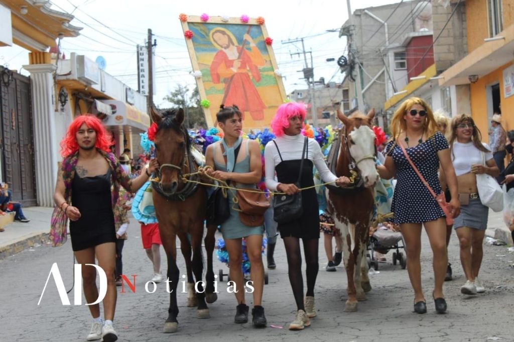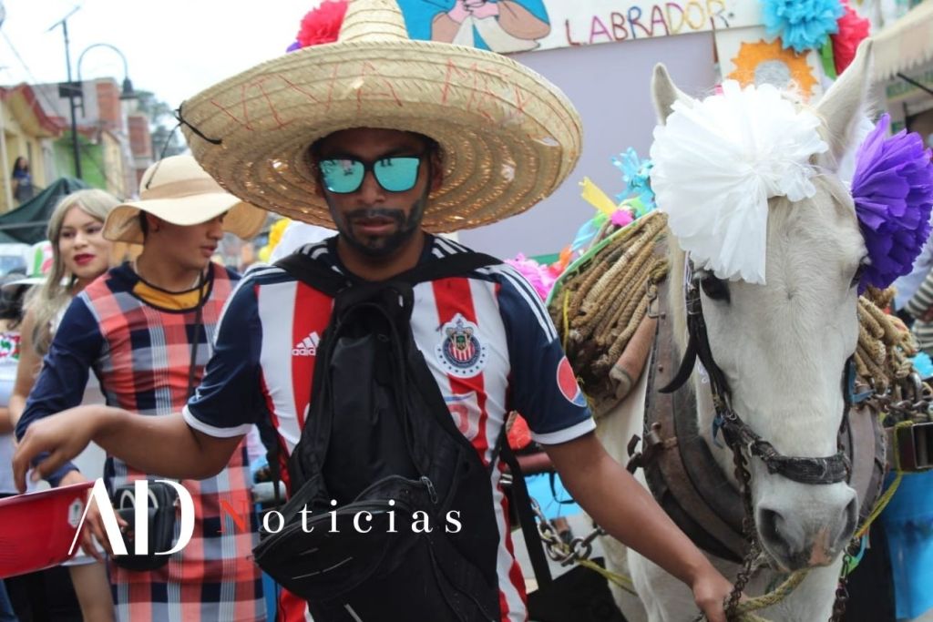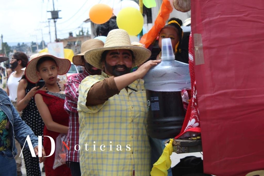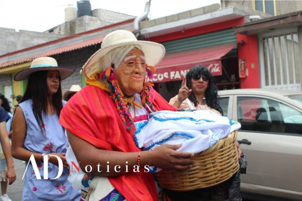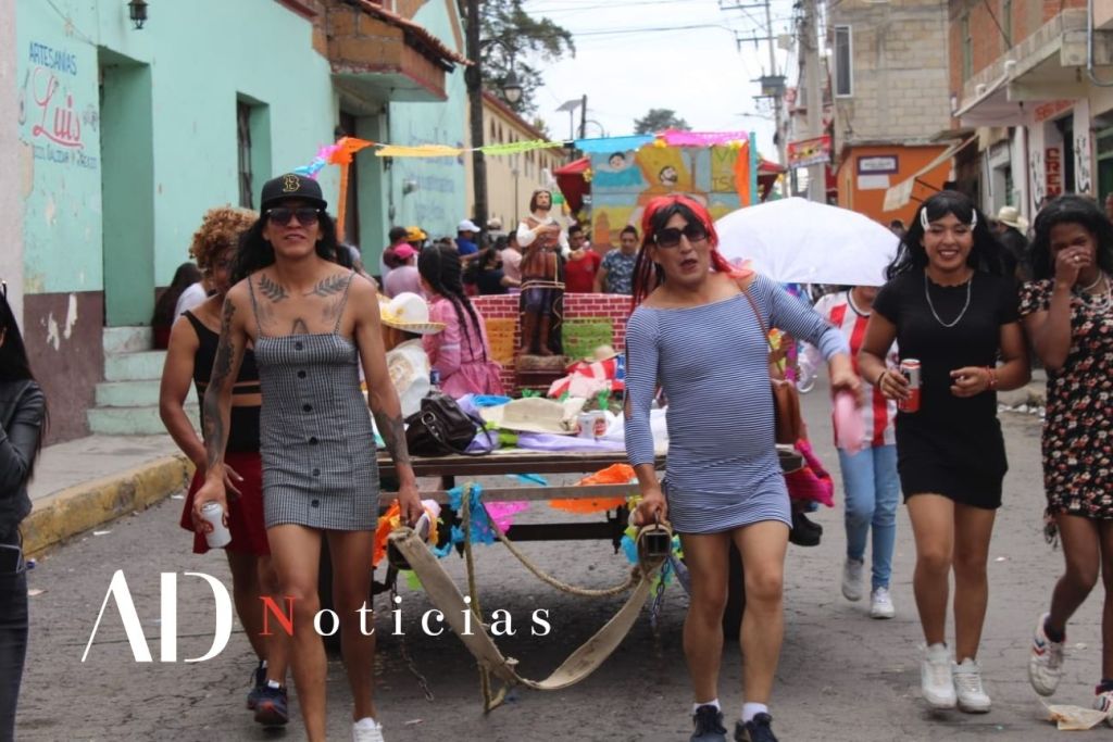 Este domingo, hombres vestidos de mujeres regalaron dulces, pan y alcohol a los cientos de personas que acudieron al recorrido.