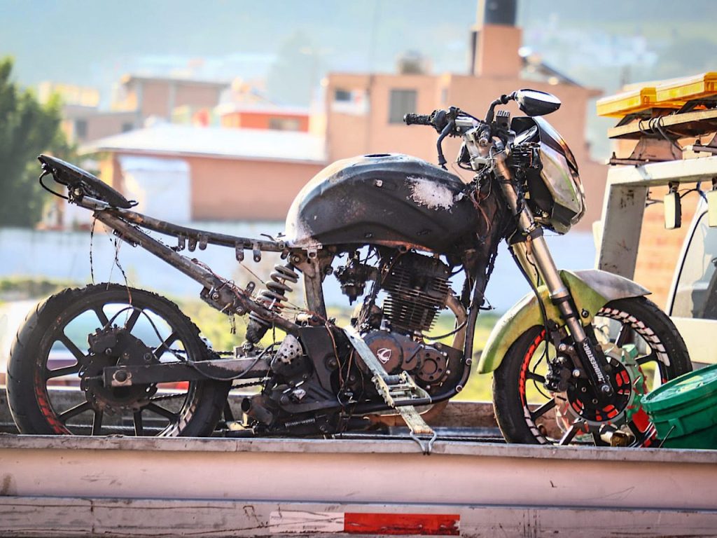La motocicleta –quemada– fue retirada del lugar en una grúa.