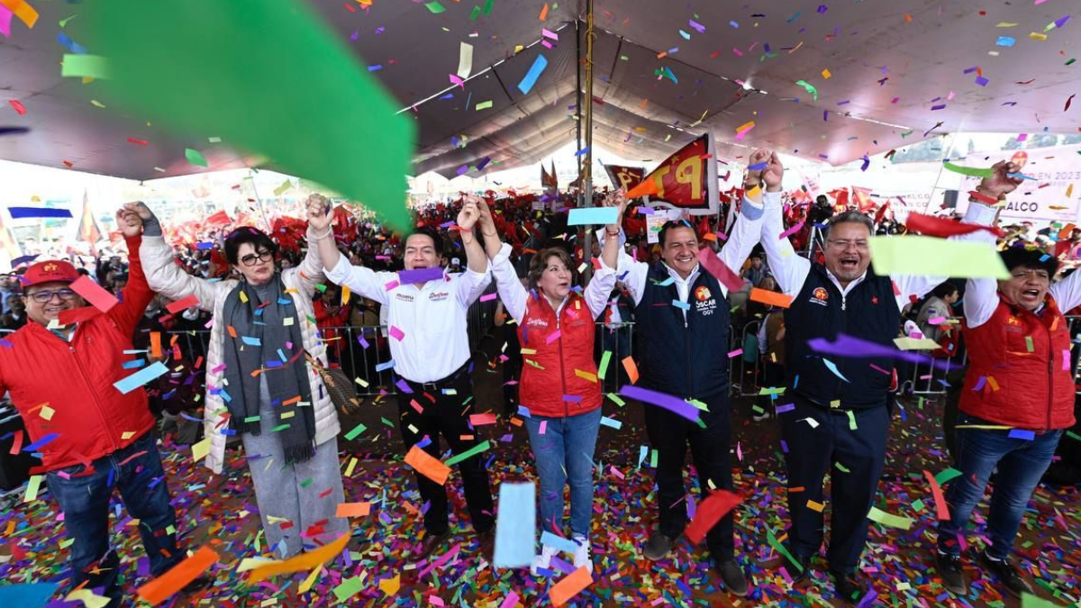 En la Plaza Cívica “Benito Juárez”, ante 5 mil simpatizantes, Delfina Gómez reiteró que “vamos requetebién, pero no hay que confiarnos porque los de allá, los conservadores, siempre van a querer una militancia como la que tenemos acá, ganamos la primera batalla”.